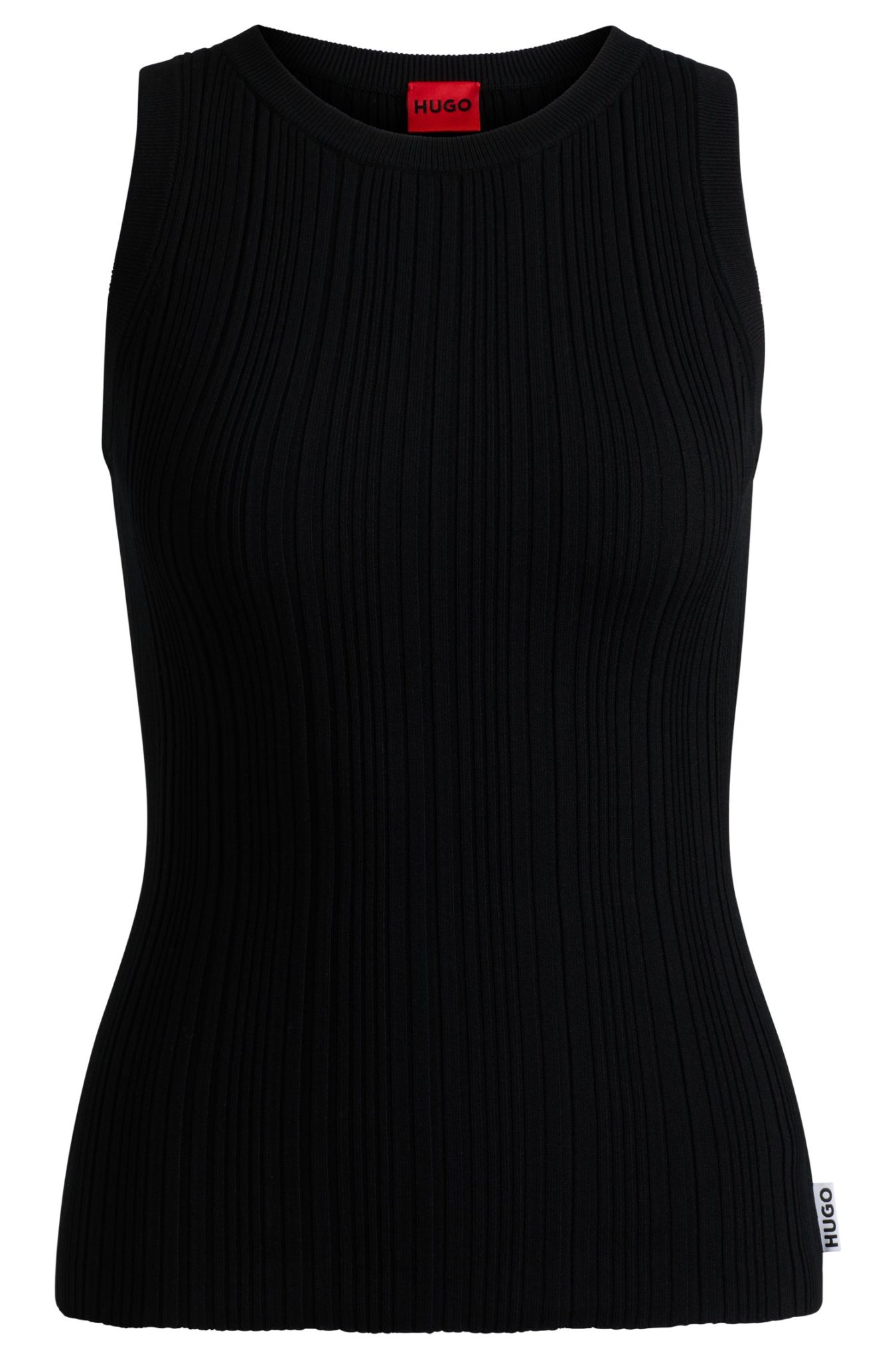 Un haut sans manches HUGO Femme. Cette pièce facile à associer en crêpe doux présente une coupe ajustée et une structure côtelée irrégulière. L’article contient des fibres de cellulose certifiées provenant de bois brut naturel issu de forêts gérées de manière responsable. Nous coopérons avec des organisations externes afin de garantir le traitement respectueux des forêts vierges et menacées.
