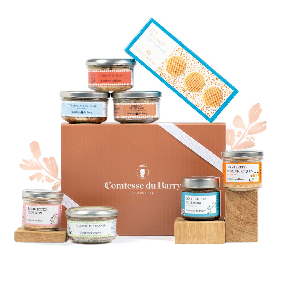 Le coffret Terre et Mer vous séduira grâce à l’alliance de produits nobles à la viande et au poisson.