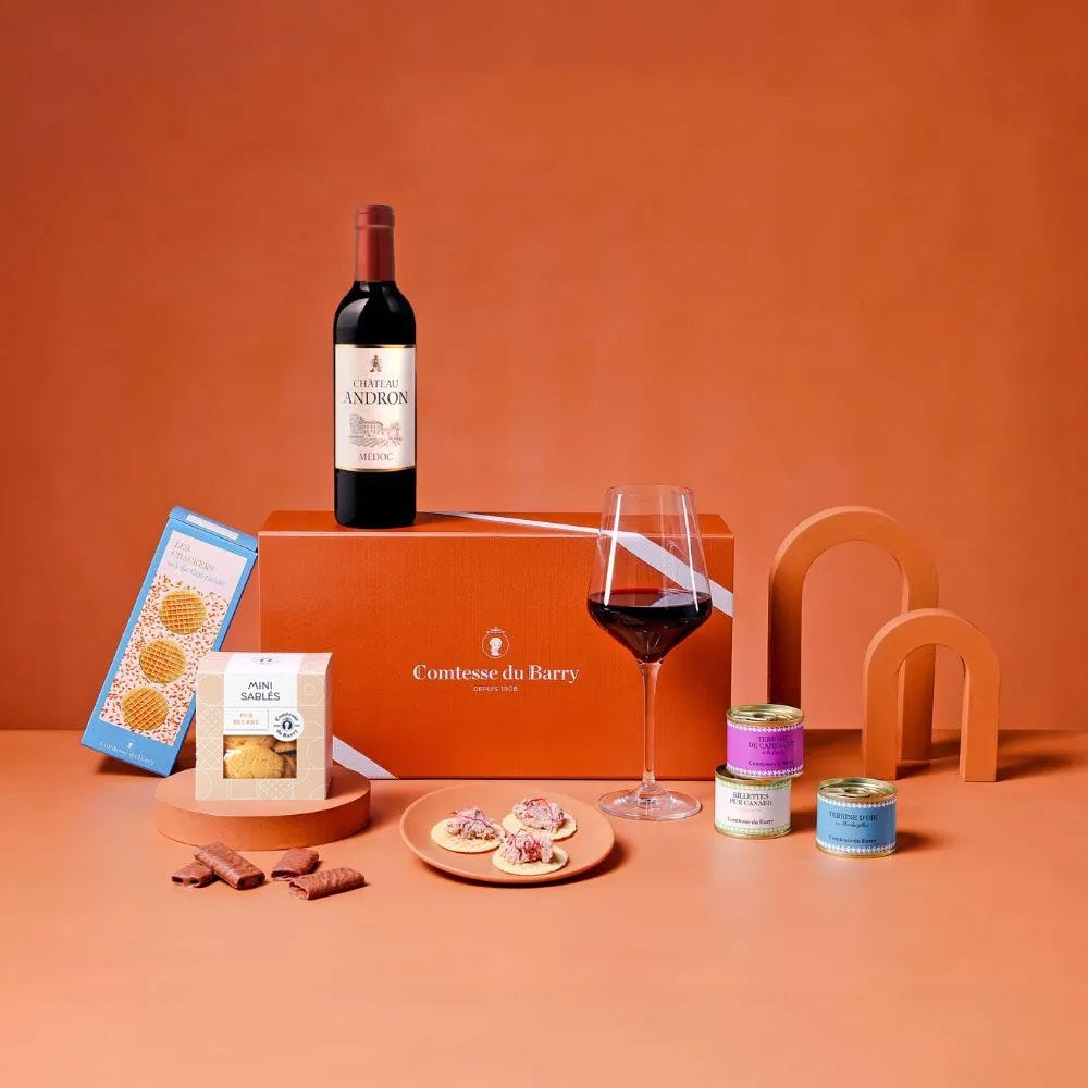 Offrez un concentré de saveurs du Sud-Ouest avec ce coffret mélant terroir et gourmandise. Un Bordeaux, des terrines, des rillettes pur canard et des douceurs croustillantes. Le coffret idéal pour un apéritif à deux.