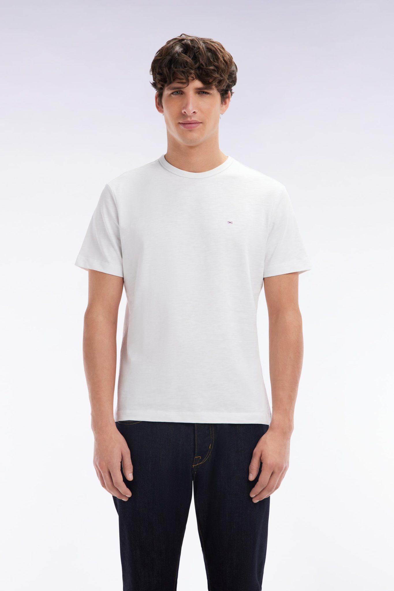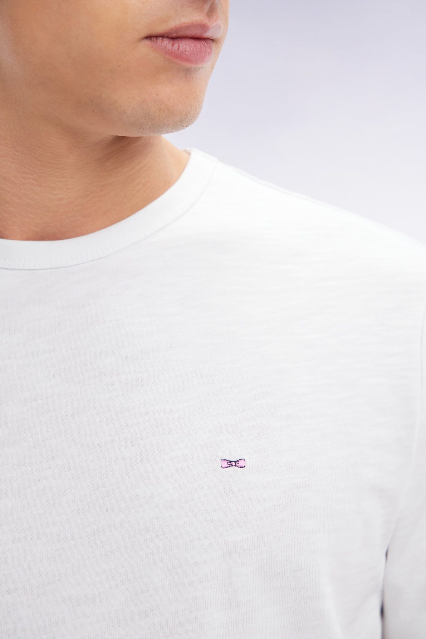 Ce t-shirt en jersey de coton slub allie simplicité, légèreté et confort. Sa finition col en bords-côtes et son nœud papillon brodé lui apportent une touche élégante. Disponible dans une palette de 7 coloris, il s’adapte à toutes les envies pour un vestiaire estival polyvalent. col rond coupe droite broderie nœud papillon