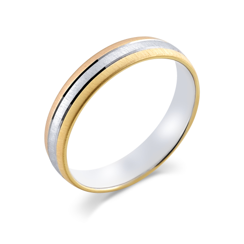 Création unique de la Maison Zeina, l’alliance James est un petit bijou de modernité. Tricolore en or blanc, rose et jaune, James se distingue grâce à sa finition marquée : le surfaçage irisé.Exclusive, cette finition lumineuse et mate à la fois confère à cette alliance un look résolument travaillé. Large de 4.5mm, ce ruban irisé se pare d’or jaune 18 carats sur ses extrémités afin d’en adoucir les contours, le centre en or blanc pour capter la lumière.Souci du détail, l’or blanc et élégamment épaulé de 4 fins liserés brillants pour en accentuer la pureté, l’ensemble est équilibré.Parfaite pour les hommes en quête d’une création à leur image, la Maison vous invite à découvrir sa sélection d’alliances 2 et 3 ors.
