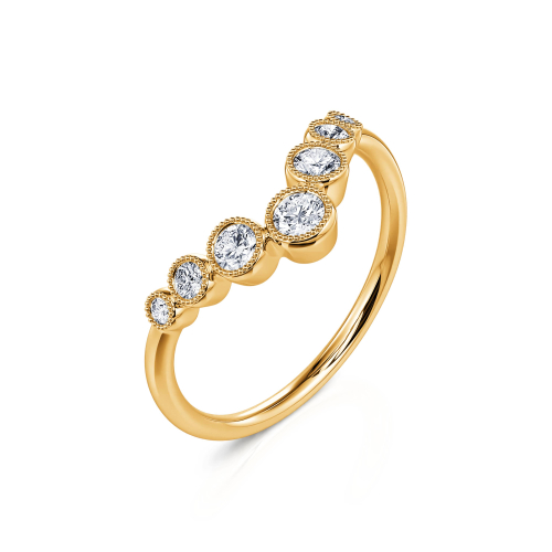 Les peintures abstraites de Sonia Delaunay qui mêlent formes géométriques et couleurs pures ont inspiré la Maison Zeina pour la création de l’alliance Sonia.Légèrement incurvée en forme V, Sonia dévoile ses formes rondes diamantées aux contours perlés. Ses diamants d’une clarté rare d’un total de 0,20cts sont disposés sur une monture en or jaune 750/1000ème. Leur éclat est accentué par de délicates perles incrustées.Ainsi, l’alliance Sonia reflète toute la liberté créative de l’artiste peintre. Le dessin de ses diamants ronds fait écho aux formes arrondies si évocatrices de l’œuvre de Sonia Delaunay. Par cette création unique, la Maison Zeina met à l’honneur cette incroyable artiste.