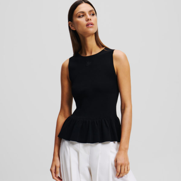 • Karl Lagerfeld, Top Tricot Peplum Sans Manches, Femme, Noir, Taille: XXXL